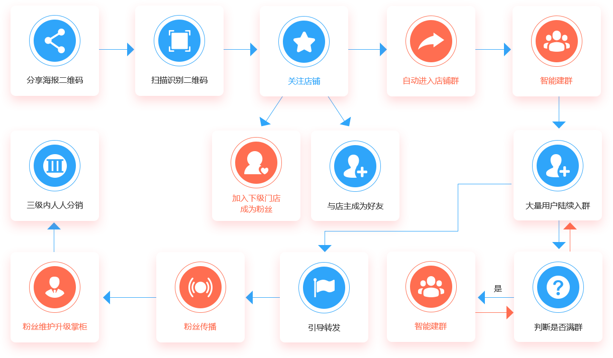 類似于消費(fèi)、交易、充值儲蓄的會員分銷體系,在幫助平臺推廣,用戶拉新拓客,營銷轉(zhuǎn)型及渠道融合等多方面都起著重要作用。對于傳統(tǒng)行業(yè)來說,會員分銷系統(tǒng)的作用就在于如何利用這個社交平臺,幫助企業(yè)解決他們關(guān)心的口碑傳播、流量銷量、客戶維護(hù)等一系列有價值的問題。