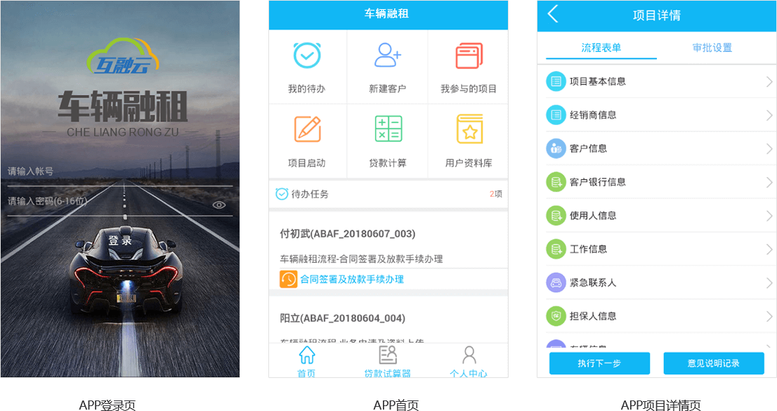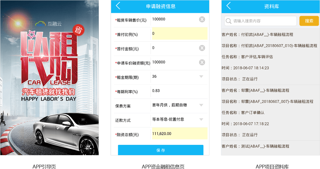 互融云整合了汽車融資租賃整個業(yè)務(wù)流程,包括租賃申請、租賃審批、租后管理、租賃車輛管理、客戶登記、合同管理、 車輛跟進記錄等全流程管理。真正實現(xiàn)了融資租賃公司的全自動化流程管理,強大的信息采集、風險預(yù)警、項目質(zhì)控、 資產(chǎn)管理等功能方便了車輛融租公司更好管控業(yè)務(wù)。