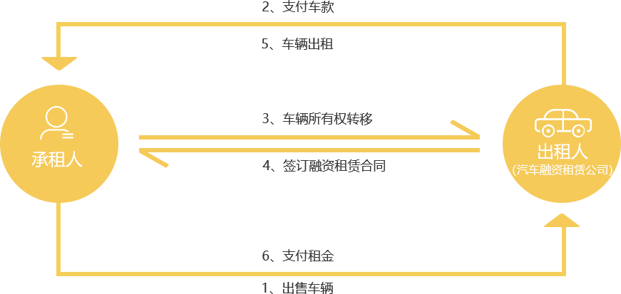 售后回租即承租人將自有車輛出賣給出租人,同時與出租人簽定融資租賃合同, 再將該車輛從出租人處租回的融資租賃形式。售后回租業(yè)務(wù)是承租人和汽車經(jīng)銷商為同一方的融資租賃方式。